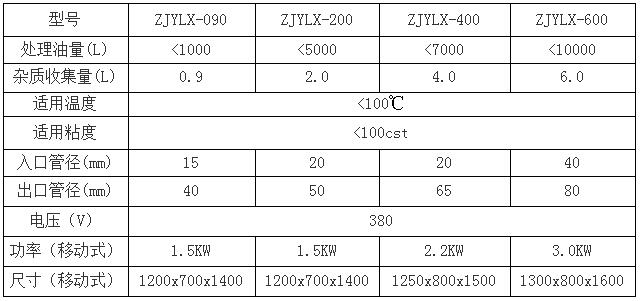 廂式離心式濾油機(jī)技術(shù)參數(shù):