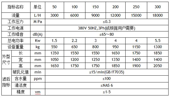 高效柴油燃油煤油聚結分離式濾油機技術參數(shù):