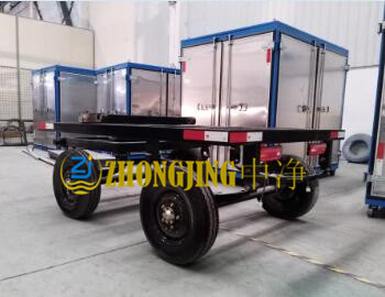 a.拖車式全封閉,移動(dòng)方便,安裝汽車輪胎,橋式減震器,剎車總成,全車鋼結(jié)構(gòu)焊接。