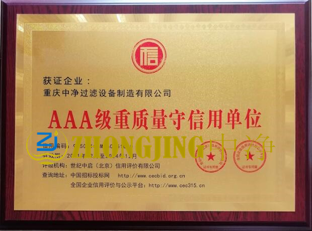 以上內(nèi)容就是講的關(guān)于誠(chéng)信單位證書(shū):想了解更多相關(guān)的內(nèi)容,請(qǐng)持續(xù)關(guān)注重慶中凈過(guò)濾設(shè)備制造有限公司網(wǎng)站,公司網(wǎng)編還會(huì)繼續(xù)更新真空濾油機(jī)相關(guān)的知識(shí),歡迎來(lái)電咨詢(xún)與定制。